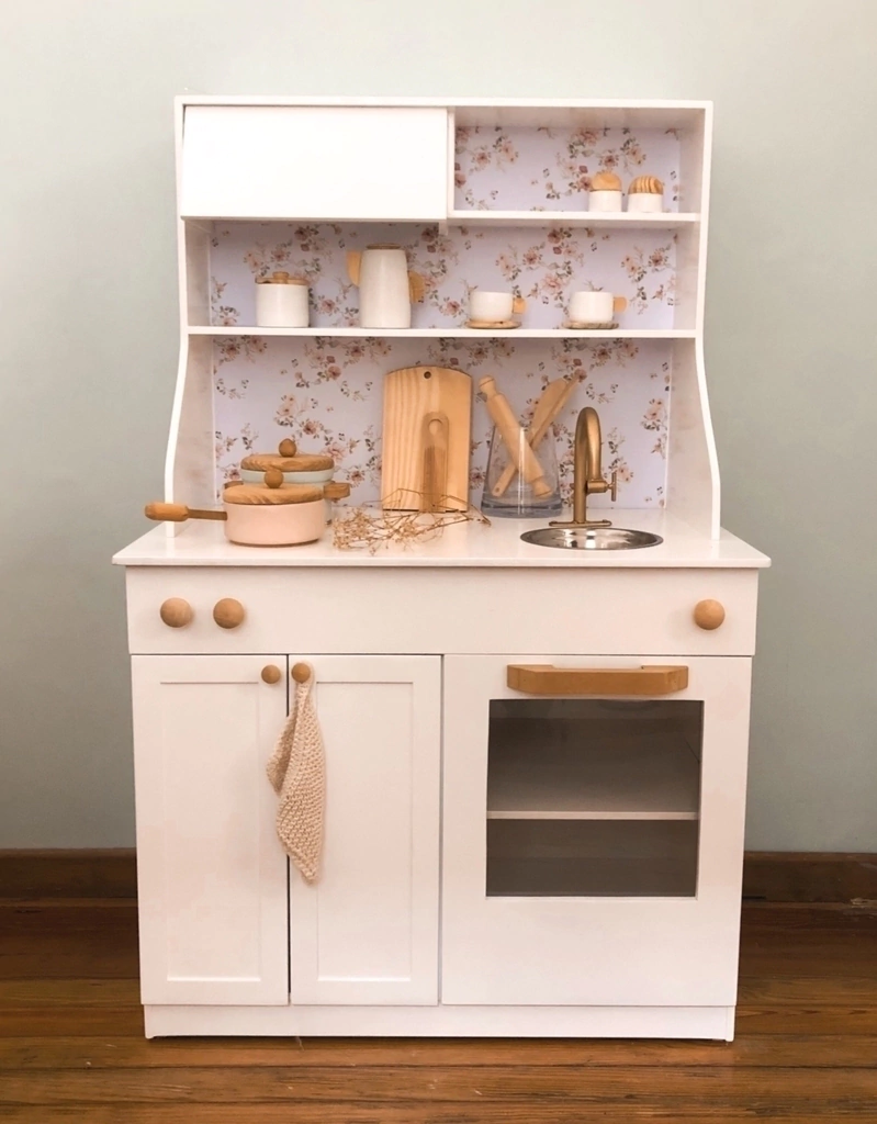 Hecha en MDF de alta densidad, con terminaciones que hacen la diferencia y, además, por dentro está pintada (porque "lo que no se ve" también es importante para Wonder). Pueden presentar alteraciones variando la veta de la madera (recordar que son productos artesanales). PVC que emula el vidrio, pero que da seguridad a los niños. La puerta del horno se abre para el costado, para evitar accidentes y promover la comodidad. Imanes en las puertas. Todas las perillas giran; el diseño de las mismas puede variar, con o sin reborde, segun disponibilidad del mercado.