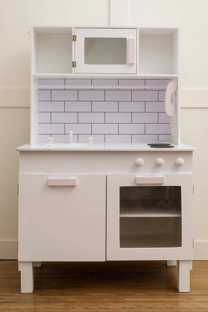 Hecha en MDF de alta densidad, con terminaciones que hacen la diferencia y, además, por dentro está pintada (porque "lo que no se ve" también es importante para Wonder). Pueden presentar alteraciones variando la veta de la madera (recordar que son productos artesanales). PVC que emula el vidrio, pero que da seguridad a los niños. La puerta del horno se abre para el costado, para evitar accidentes y promover la comodidad. Imanes en las puertas. Todas las perillas giran; el diseño de las mismas puede variar, con o sin reborde, segun disponibilidad del mercado.